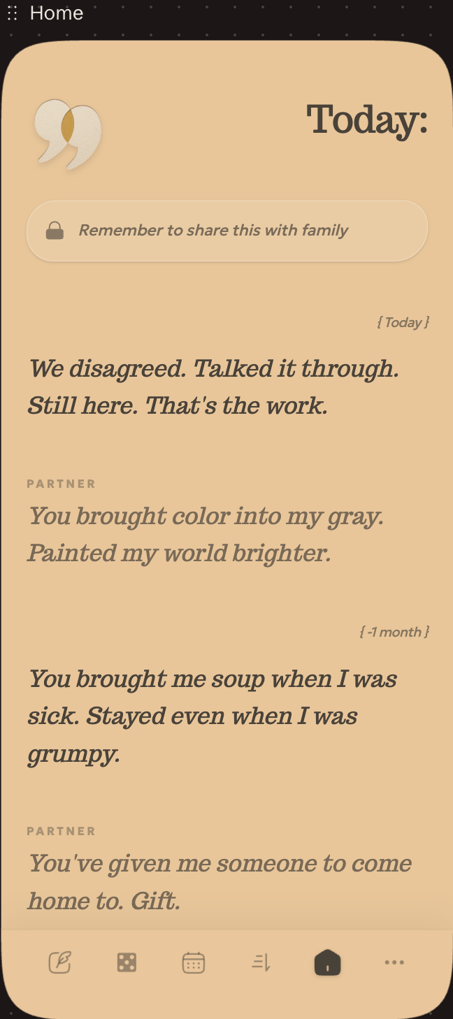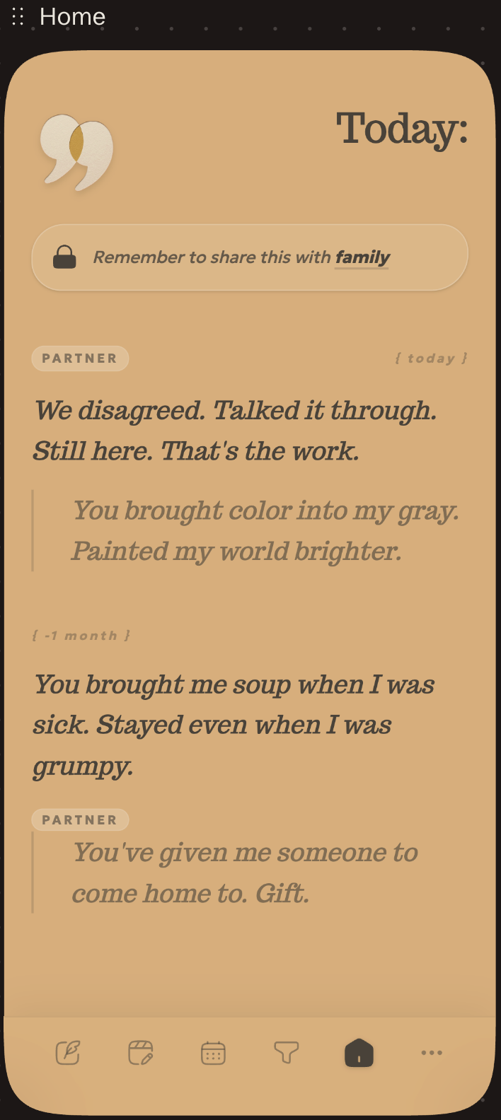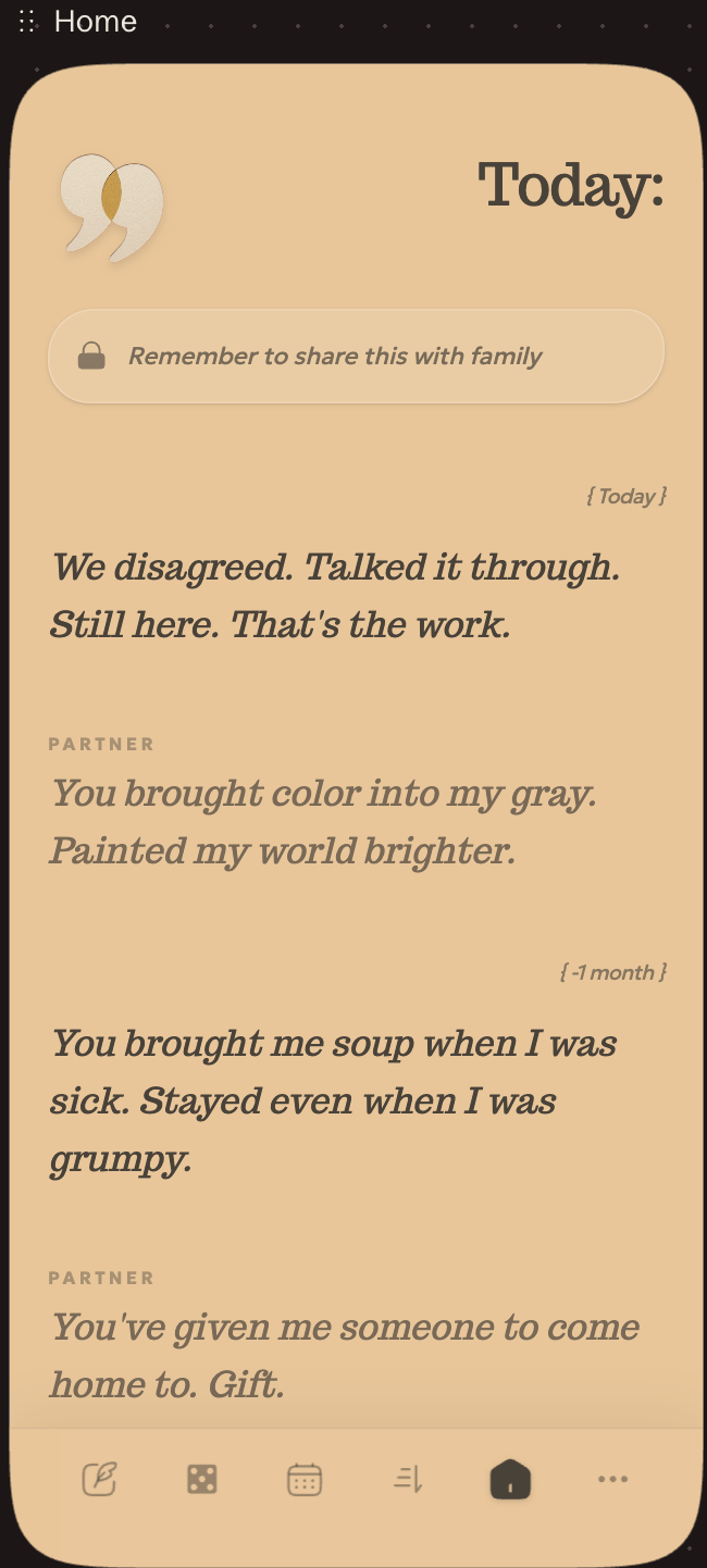 A thought, a photo, or a scribble. One a day, shared with the people who matter most. No likes, no followers, no algorithm.
